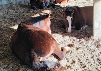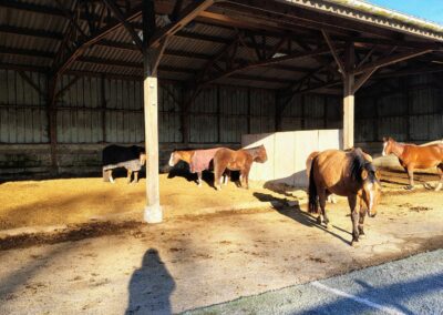 Les chevaux s’adaptent bien à la vie en écurie active avec pré, et en troupeau. Après un temps d’acclimatation, ils trouvent leur place dans le groupe et comprennent le fonctionnement de l’écurie. Ce temps est d’une durée variable selon les individus, leur caractère, leur passé.
