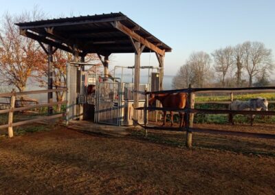 L’aménagement de cet espace est très important pour favoriser le déplacement des chevaux sur environ 10 km par jour. Le cheval est en activité de manière naturelle et instinctive : il recherche par lui-même eau et nourriture, il a accès à un espace confortable abrité et paillé, et un accès sélectif au pré.